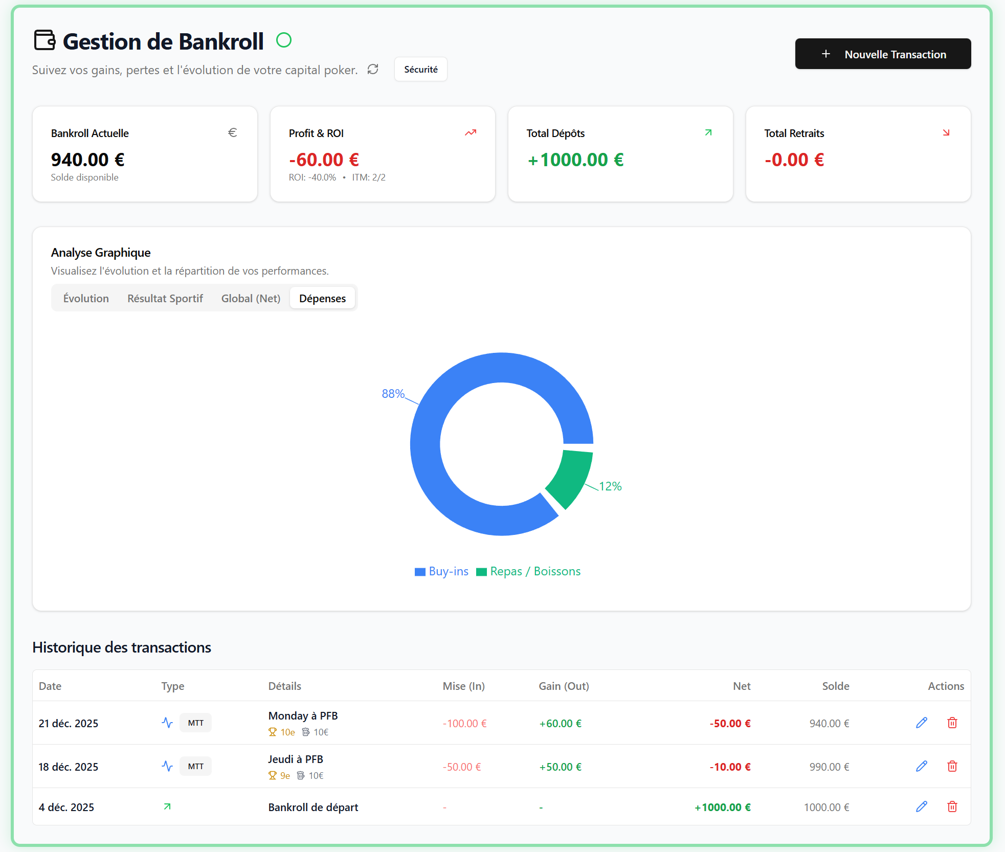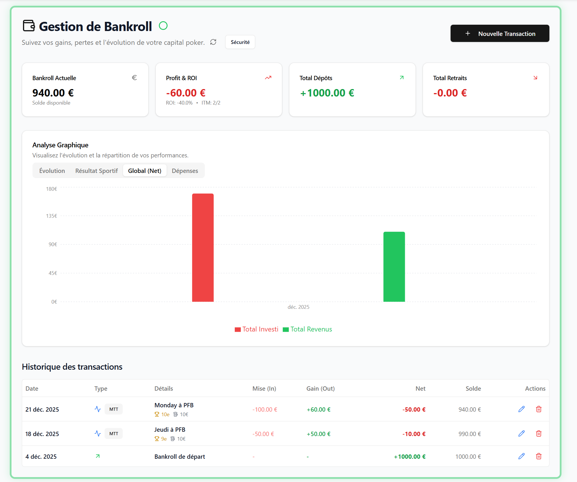 Suivez votre bankroll facilement et comprenez vos gains pertes habitudes afin de jouer plus sereinement et progresser durablement.Maîtrisez vos gains