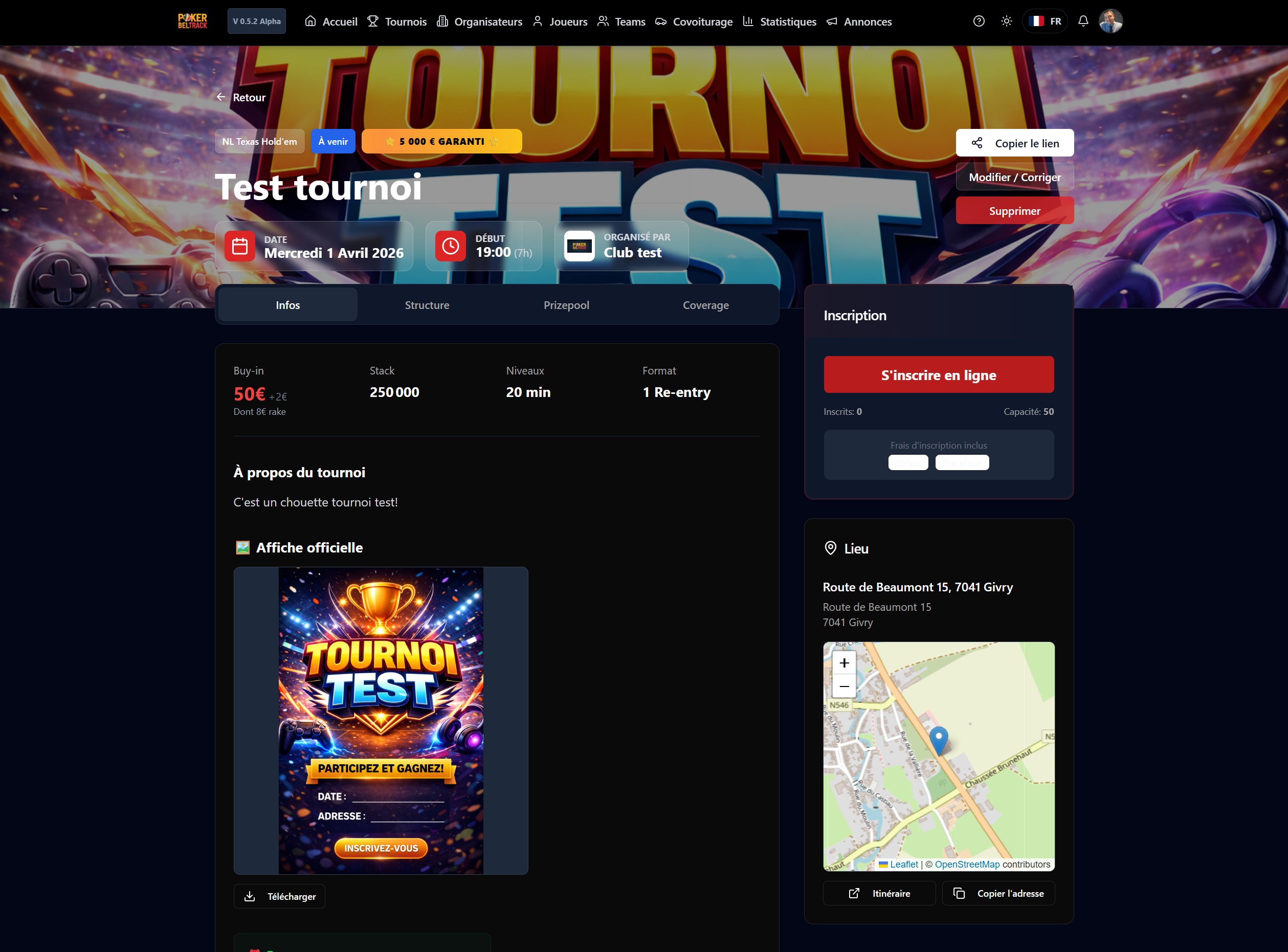 Découvrez les tournois disponibles près de chez vous avec toutes les informations essentielles centralisées dans une application.Tout au même endroit