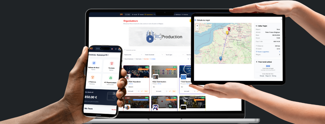 PokerBelTrack centralise et structure les données essentielles du poker en Belgique afin de vous offrir une vision claire, fiable et accessible à tout moment.